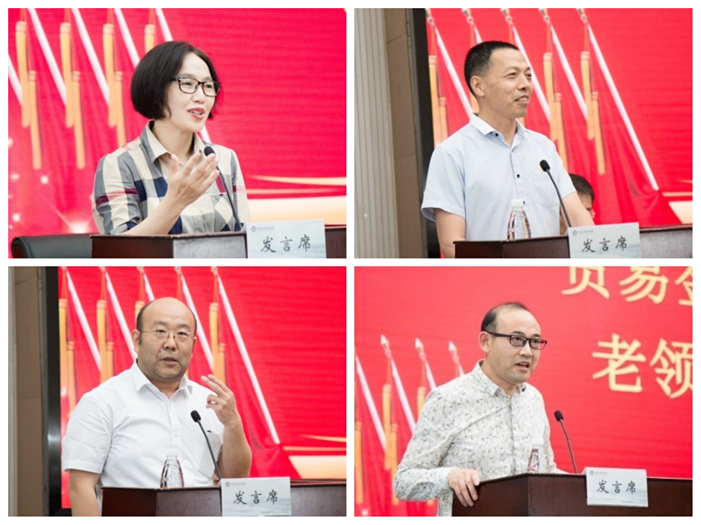 原经管系副主任杨帆、原贸易金融学院党总支书记赵宏宾、原贸易金融学院副院长鲁继业、原贸易金融学院副院长唐德淼分别寄语,回首贸金峥嵘岁月,展望学院美好未来。
