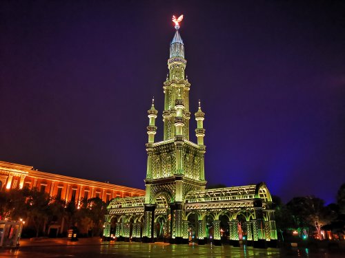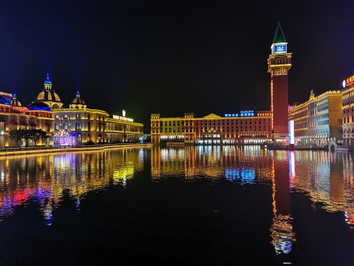 夜幕降临,华灯初上,一幢幢欧式风格的建筑、一座座异国风情的雕塑,在色彩斑斓的灯光映衬下,飞马水城变身为一个充满浪漫情调的欧洲小城,美轮美奂。