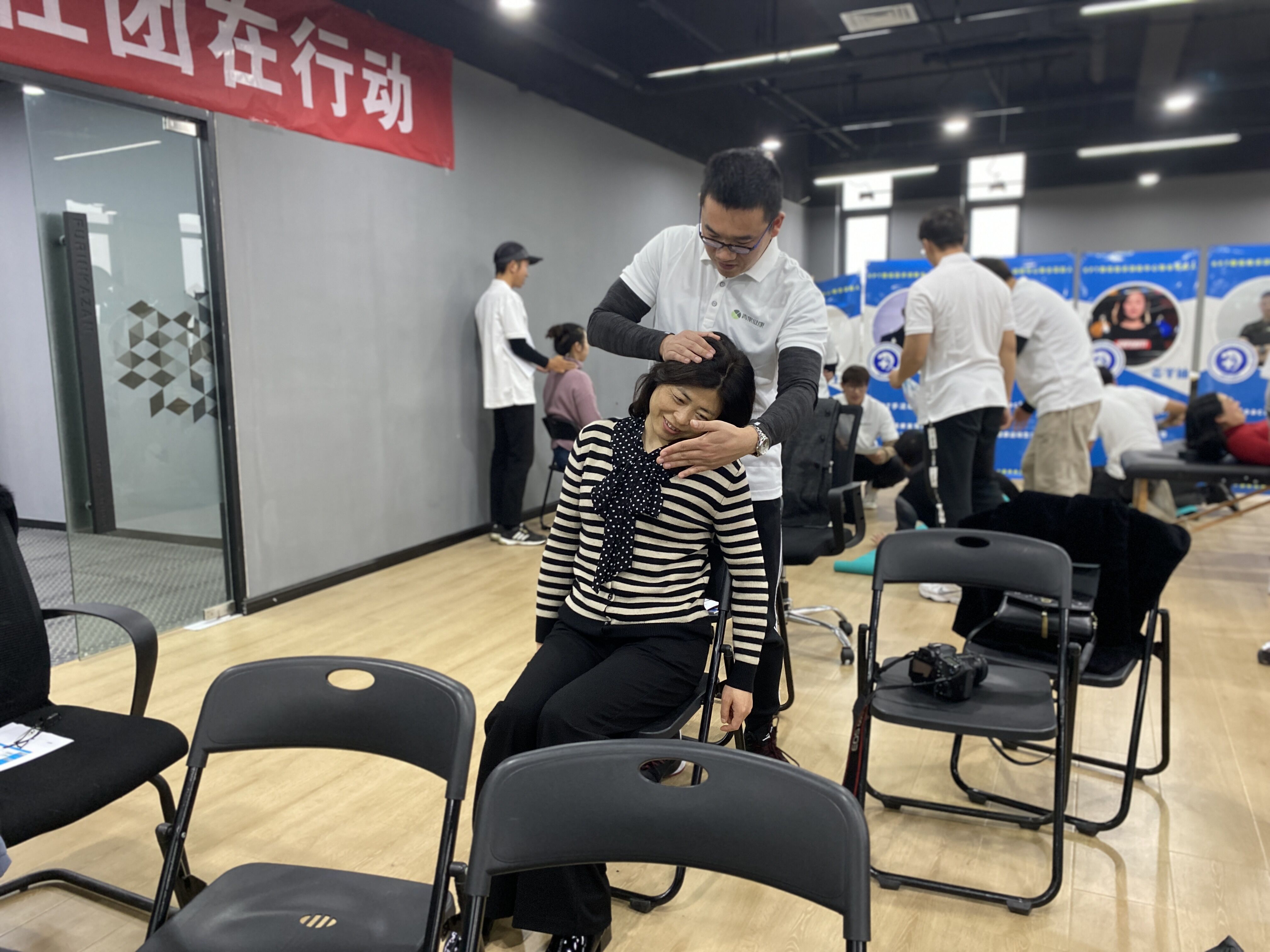 授课讲师房栋现场为教师们讲解腰颈肩椎问题,并引导教师学习运动康复动作,帮助大家缓解腰颈肩椎不适。丛哲老师带领老师们一起进行健康养生操和体能训练,活动现场洋溢着大家的热情和笑脸。 风林火山健身俱乐部是学校校企合作基地之一,活动现场,休闲服务与管理专业的学生作为志愿者,在现场积极地将所学专业知识运用在实践环节中,理实结合,学做一体,校企协同育人效果明显。 本次工会活动内容丰富,师生同乐,老师们不仅活动了筋骨,还对自己的健康状况有了更详细的了解,增强了自我保健和锻炼意识,全体教师将带着健康的身体、满怀的激情投入到教学科研等各项工作中去,提升职业幸福感。(文:郭瑞;图:章丹芸;审核:徐群征) | |||||