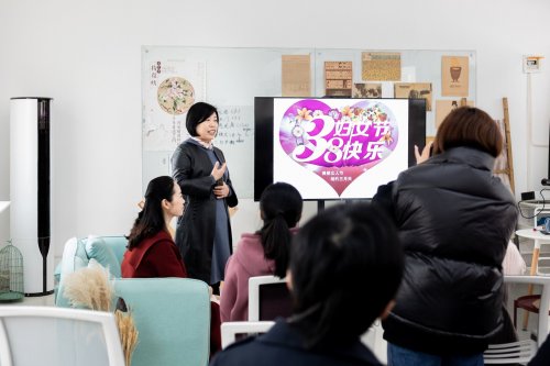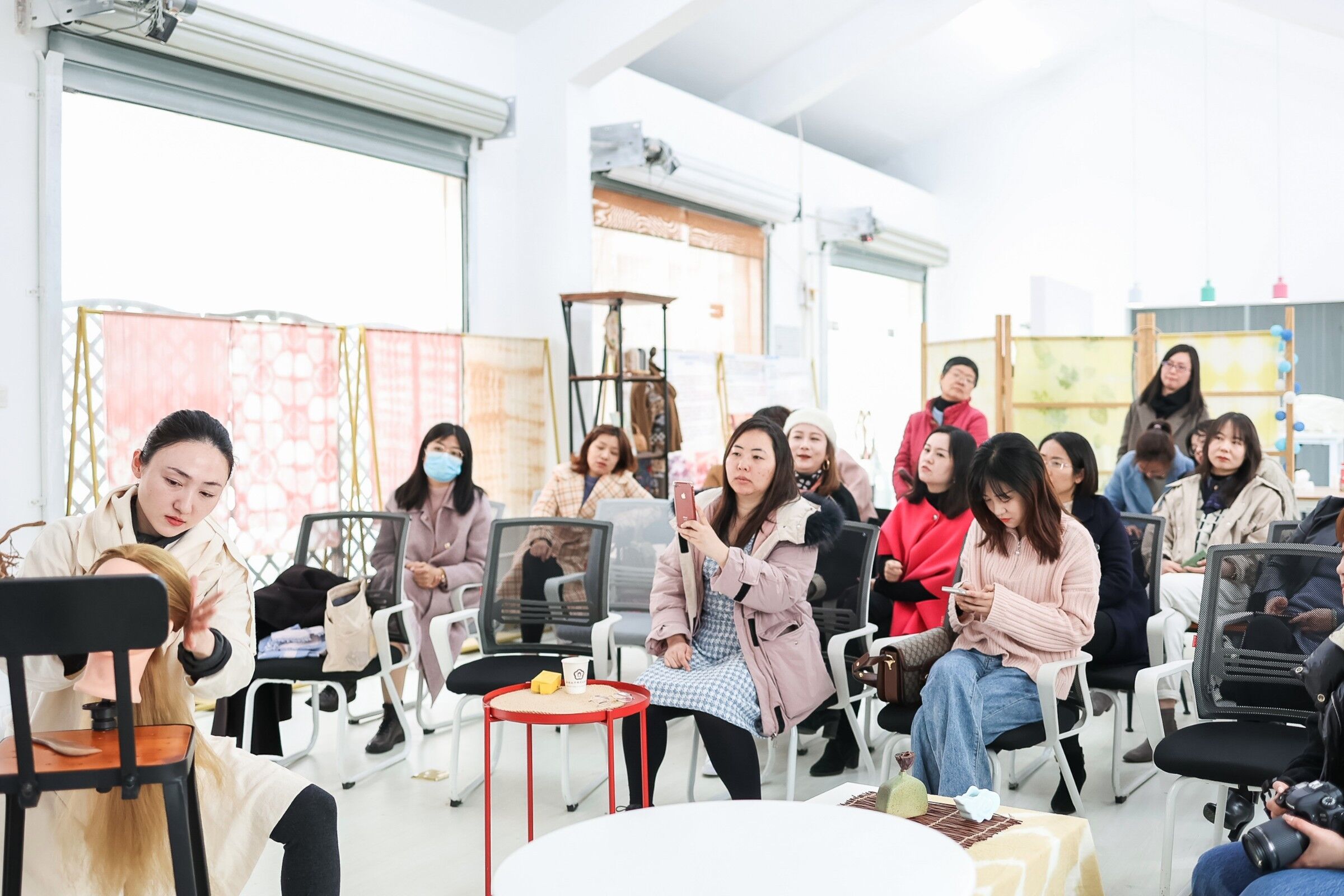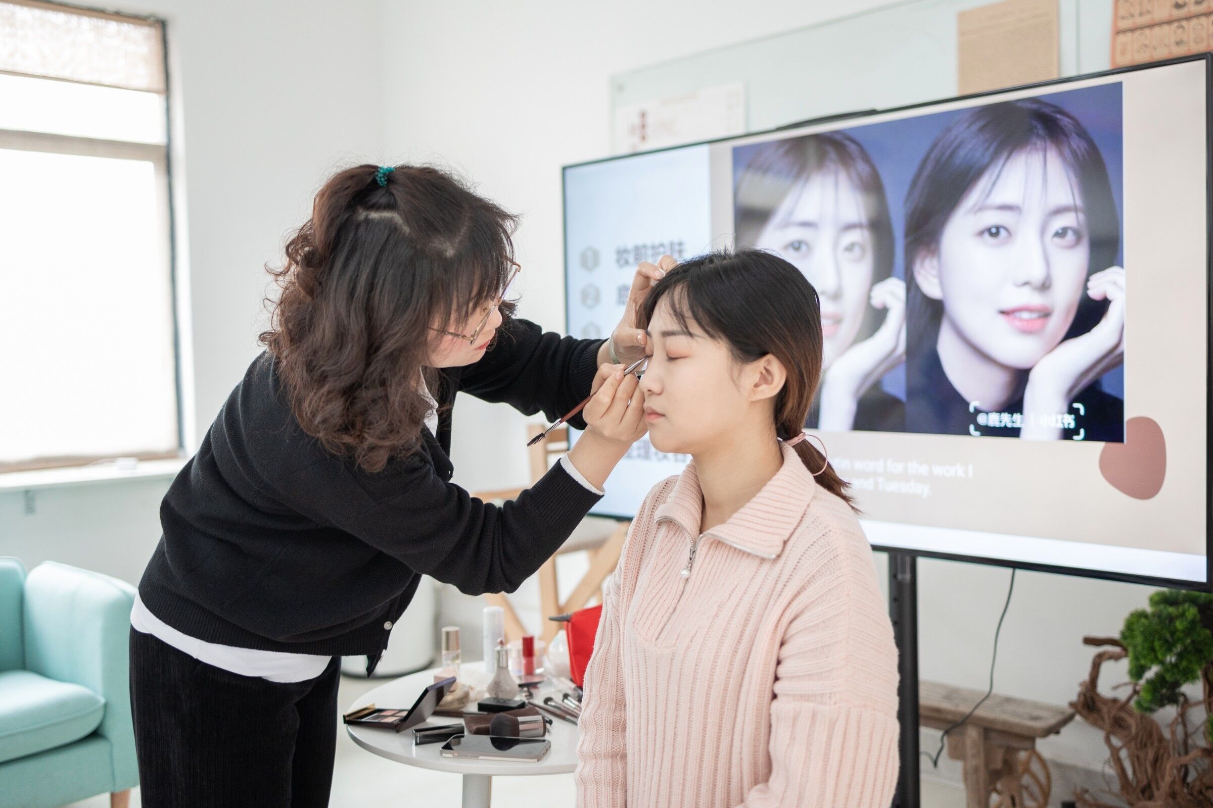 为庆祝第111个国际“三八”妇女节,提升我校女教师幸福感,激励广大女教师塑造独立、自信、魅力的现代女性新形象,3月5日上午,“三八妇女节”系列活动之形象设计沙龙在影视学院蓁苒工作室举行。副校长、校工会主席梅亚萍,影视学院副院长秦潇璇,党总支副书记左占卫,校工会女工委主任高丽金莅临现场,各分工会女教师代表近30余人参加活动。本次活动由影视学院承办。 活动伊始,左占卫对各位领导来宾表示热烈欢迎,对大家表示了节日的祝福,期待大家能从这次活动中得到美的感受,美的提升。 活动中,影视学院三位专业教师为大家带来了一场“美,从头开始”为主题的形象示范指导课。首先由人物形象设计系主任张若含为大家讲解如何拒绝“无效穿搭”逆袭“有效时髦”,从职场服饰的面料选择、单品搭配等方面展示了职场女性的优雅穿搭。紧接着,龚静子以辅导员白冰老师为例,现场示范了通勤妆的画法,看着白老师如何从素颜女孩一步步变成妆容精致的女神,老师们连连称赞,每一个细节都不想错过。最后,王茜对发型设计做了精彩的演讲及示范。