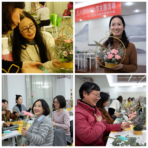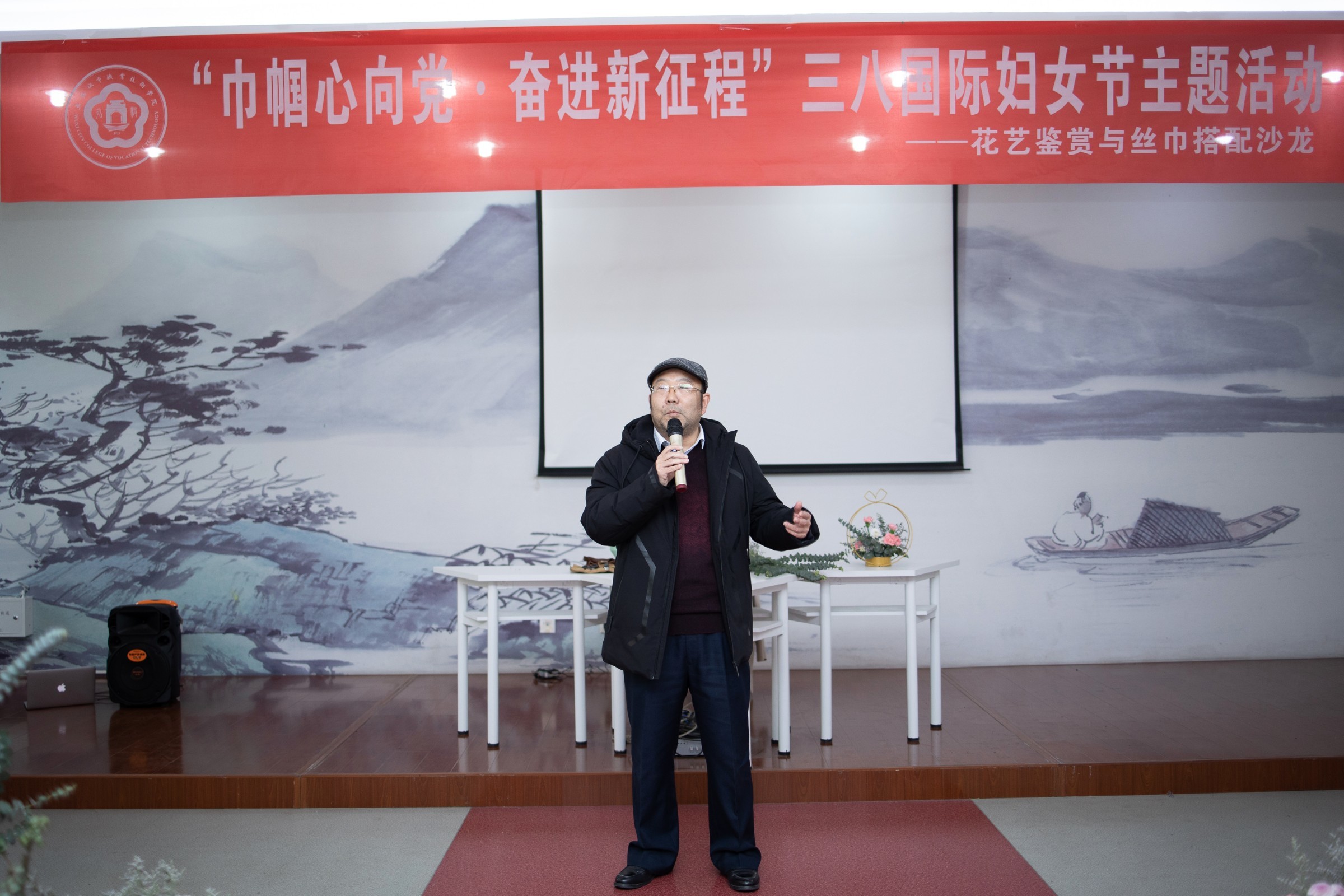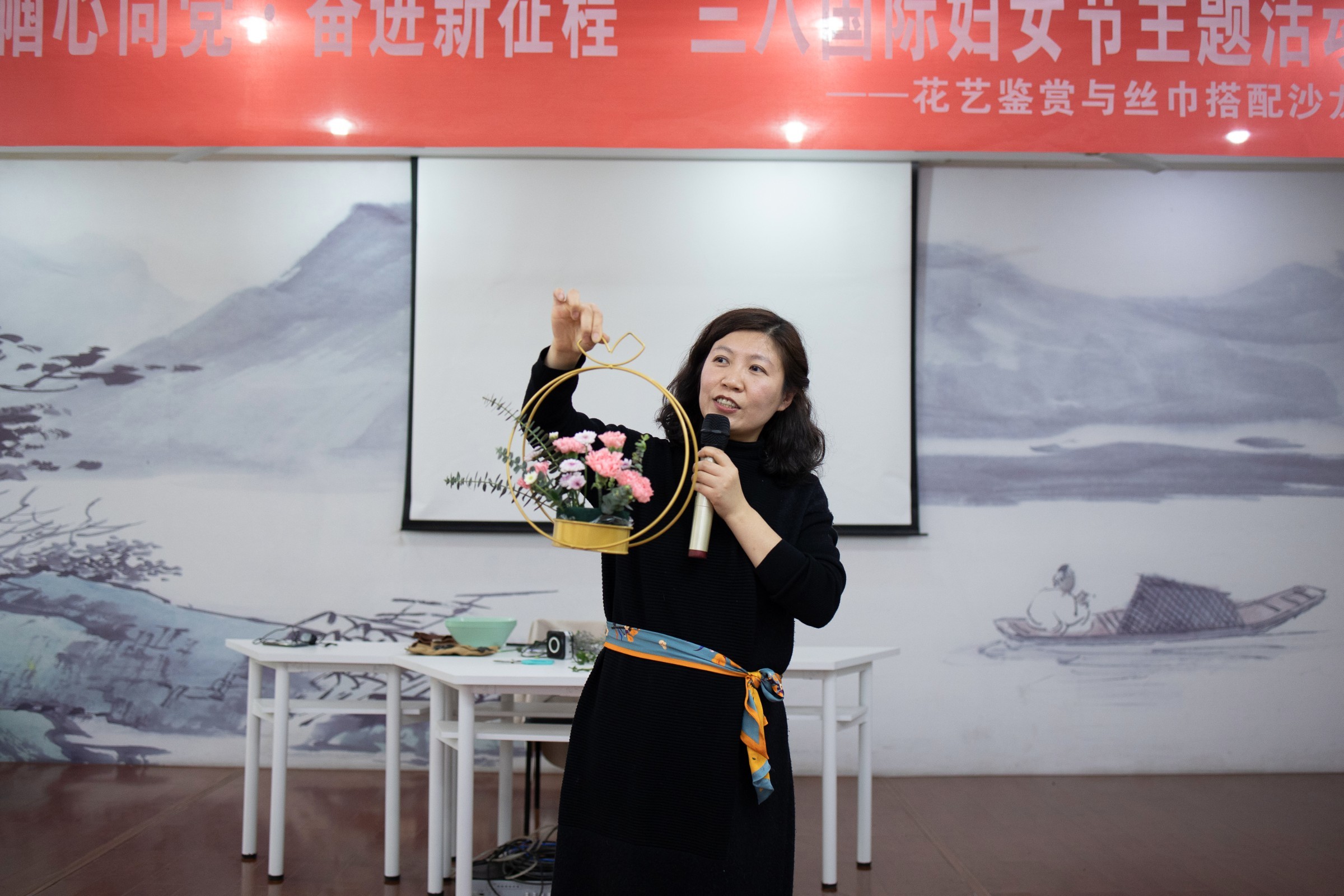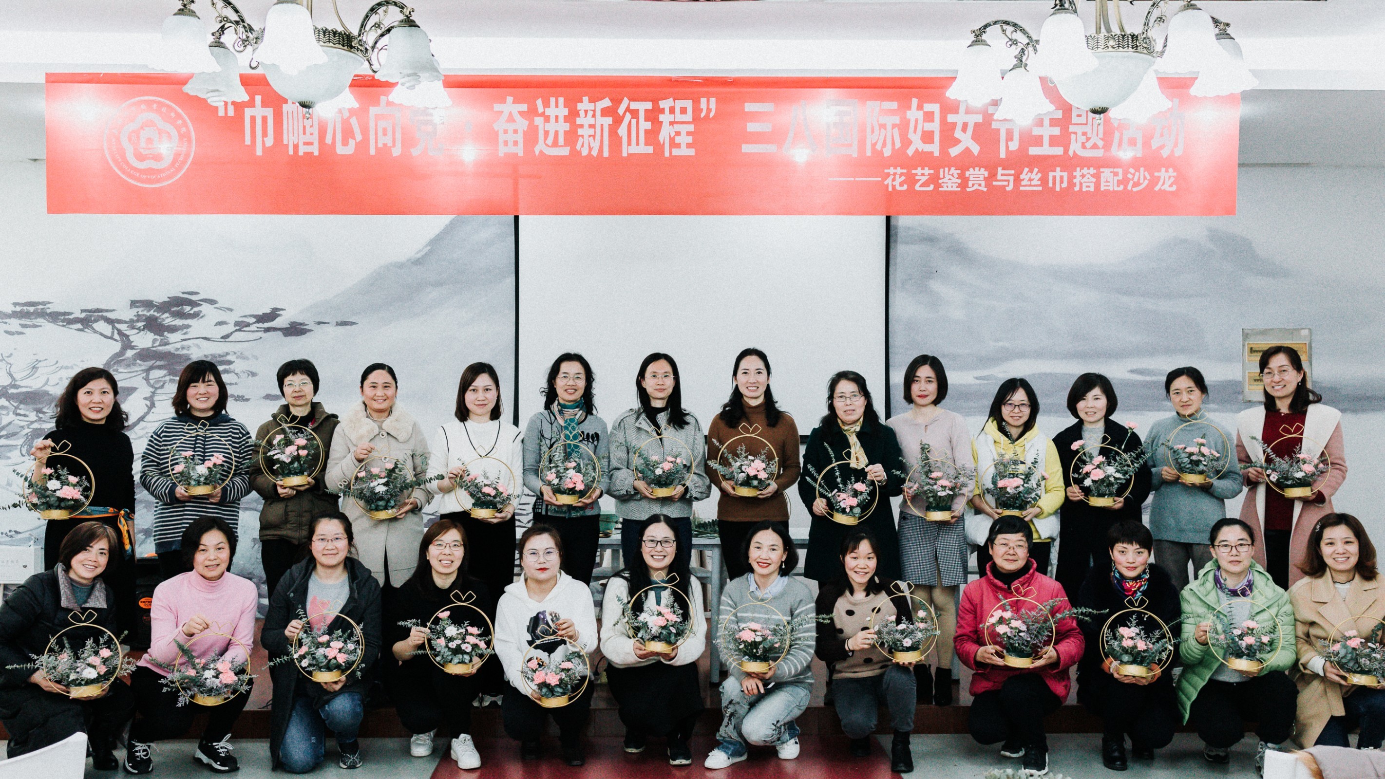 ----“三八国际妇女节”系列活动之花艺鉴赏与丝巾搭配沙龙 三月春光无限好,魅力巾帼绽风华。3月17日下午,“三八国际妇女节”系列活动之花艺鉴赏与丝巾搭配沙龙在旅游学院中餐实训室举行。副校长、校工会主席梅亚萍,校党委委员周栎出席,校工会副主席鲁继业,校工会女工委主任高丽金,旅游学院党总支副书记徐群征和各分工会女教师代表近30余人参加活动,本次活动由旅游学院承办。