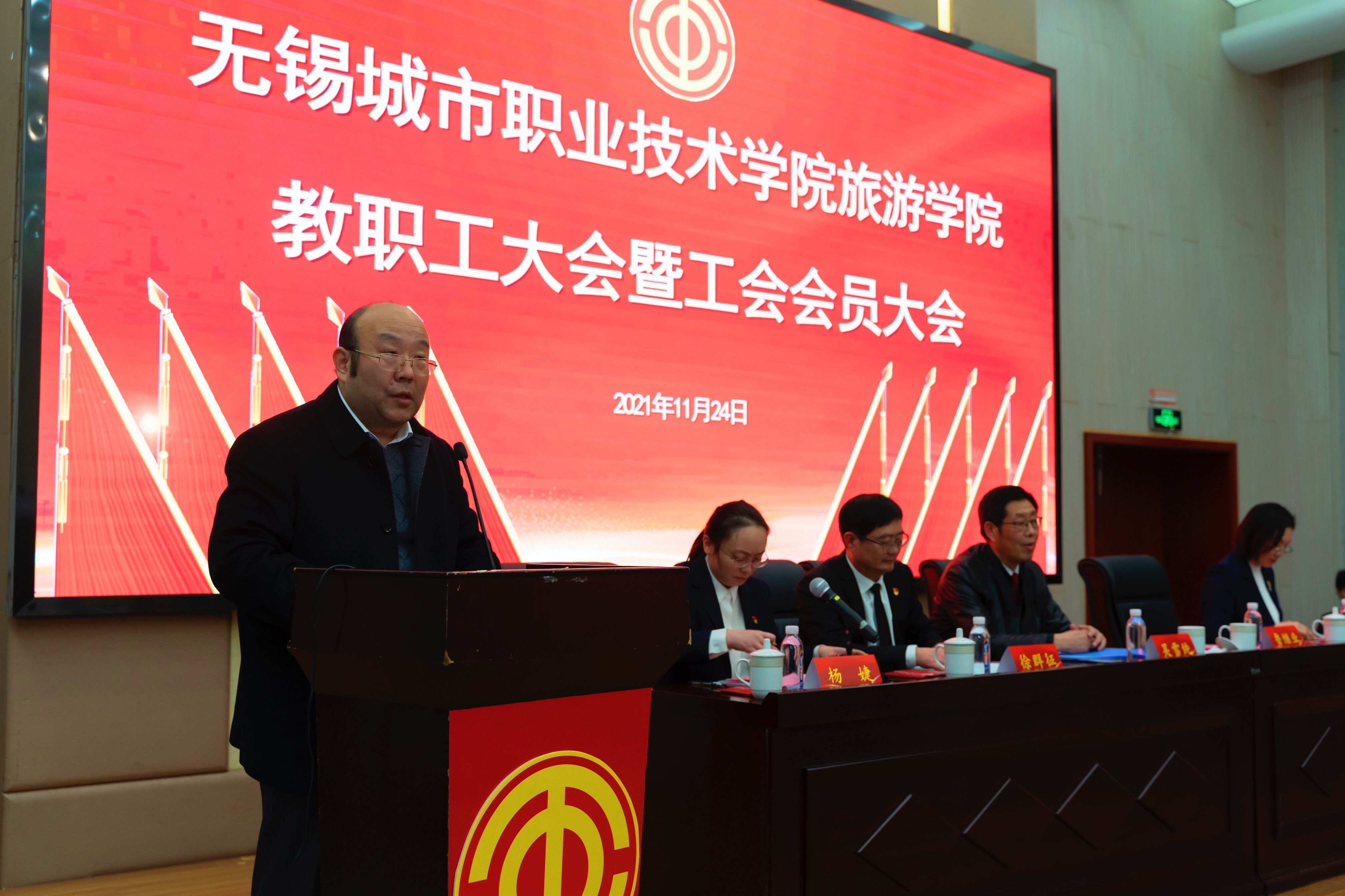 11月24日下午,旅游学院在北校区图文信息中心小报告厅召开2021年教职工大会暨工会会员大会。校领导吴雪纯、校工会副主席鲁继业、学院党政负责人及全体教职工参加了会议。会议由旅游学院党政办公室主任、分工会主席杨婕主持。
