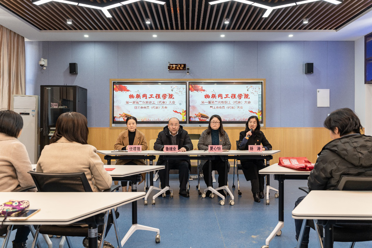 12月1日下午,物联网工程学院在北校区教学楼智慧教室4302召开第一届第二次教职工大会暨工会会员大会。校工会副主席鲁继业、物联网工程学院党政负责人及全体教职工参加会议,会议由党政办公室主任、分工会主席杨涛主持。