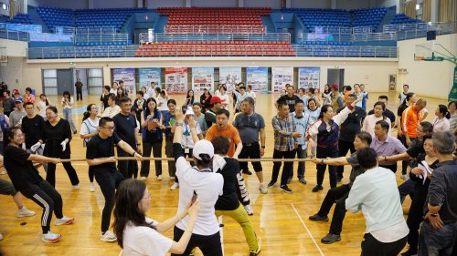5月11日,我校2024年教职工趣味运动会在南校区体育馆和田径场拉开了序幕。全体在校校领导及全校13个分工会、400余名教职工参加了活动。 教职工趣味运动会是活跃校园文化氛围、增强团队凝聚力、激发教职工体育锻炼意识的群体性运动。比赛前夕,各分工会广泛动员,认真组织,积极引导教职工走出教室、走出办公室,走向绿茵场、走向运动场,共同感受春日的暖阳与美好,享受团体运动的激情与乐趣,同时展现每个分工会的组织力、战斗力和凝聚力。在趣味横生的运动中强身健体、增进友谊、凝聚合力,共享快乐、搭建和谐的校园。 本届运动会共有4*100米接力、跳绳接力、旱地龙舟、拔河、心心相印、抛绣球、托球往返接力、花毽围等八个项目,活动各具特色和趣味,满足了不同教职工的爱好和兴趣,同时每个活动均需参赛团队成员默契合作、齐心协力才能取得好名次,对团队精神和协同观念提出了更高要求。 旱地龙舟 跳绳接力 拔河 心心相印 赛后老师们纷纷表示,此次活动项目设计新颖,比赛中既紧张激烈,又好玩有趣,也深切体会到只有“团结一心、众志成城”才能勇夺桂冠。 经过激烈角逐,旅游学院分工会获得团体第一名,贸金学院、影视学院分工会获得并列第二名,马院、体育部、基础课部分工会分获第四至六名。旅游学院、贸金学院、影视学院分工会获得教工运动会优秀组织奖。 | |||||