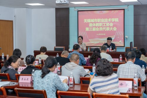 党委副书记吴开勇致辞 会上,王建代表第二届理事会作工作报告,全面总结四年来工作成果,并就未来工作提出建议。随后,大会审议通过《无锡城市职业技术学院退休教职工协会章程(修订)》、选举办法及监票人、计票人名单。经选举,王建、陈逸鸣、陈新南、于丽华、赵慧5位同志组成第三届退教协理事会。